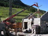 Pour le levage des charpentes, l'entreprise possède aussi une grue à tour CATTANEO de 21 mètres, ainsi qu'un mat élévateur de 7 mètres. Le gros de notre travail est réalisé avec du matériel portatif (mortaiseur à chaine, circulaires et rabots adaptés à la charpente, scie radiale, scie à ruban...).