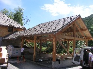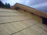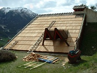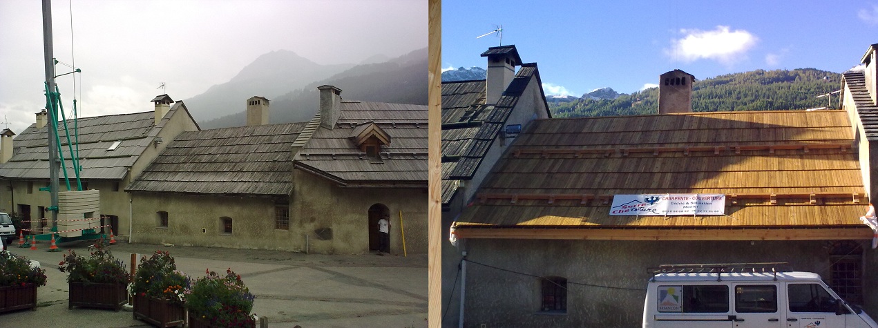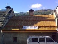 Couverture en bardeau de mélèze sur la place de l'Eglise de la salle