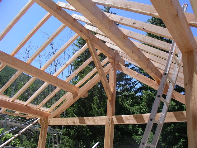 Nous réalisons des charpentes traditionnelles en Mélèze massif du Briançonnais ainsi qu'en bois blanc (type Pin, Sapin, Epicéa)