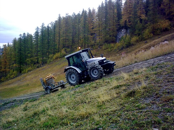 Nos moyens : Nous disposons de plusieurs utilitaires, véhicules 4x4, fourgons et camion plateau, un tracteur Lamborghini de 100 CV et sa remorque de 7 m pour acheminer en milieu difficile (haute montagne).