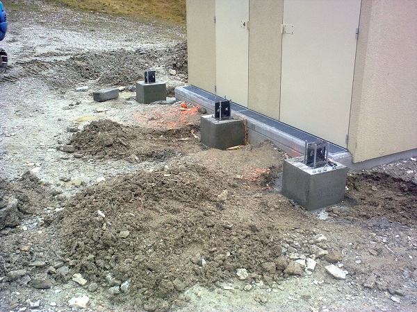 Réalisation de plots en béton pour supporter une charpente de protection de transformateur électrique au Télésiège de la Cucumelle